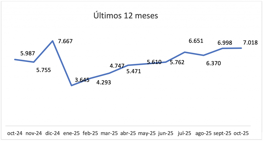 La cantidad total de las escrituras de compraventa de inmuebles registró en el décimo mes de 2025 una suba de 17,2% respecto del nivel de un año antes, al sumar 7018 registros, mientras que el montototal de las transacciones realizadas ascendió un 85,1%, con $1.175.883 millones.